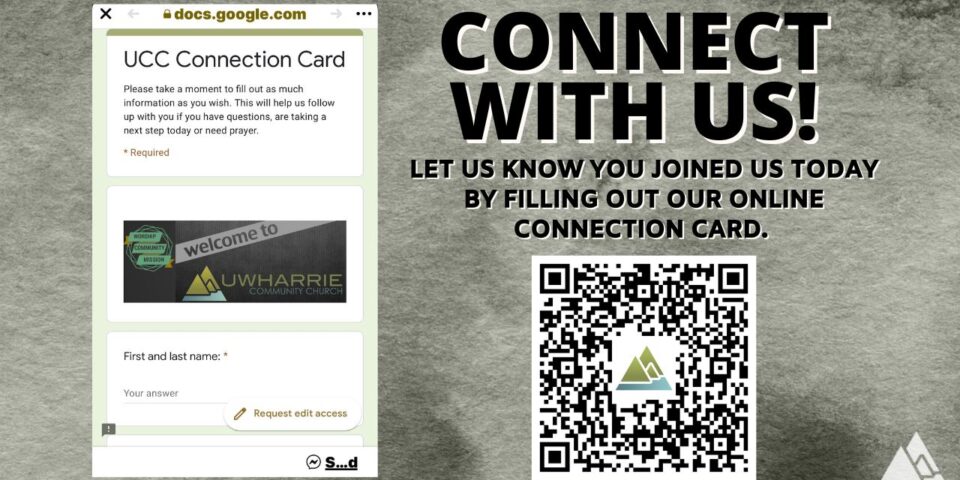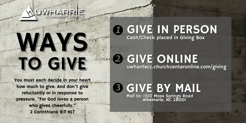 Uwharrie Community Church exists to help people LOVE God, LOVE others and LOVE sharing the Good News of Jesus. That means we WORSHIP God in every area of our lives, we love and serve those in our COMMUNITY and we take our MISSION seriously of telling others of God’s love for them. We say it like this, “Love HIM, Love THEM, Tell them WHY.”