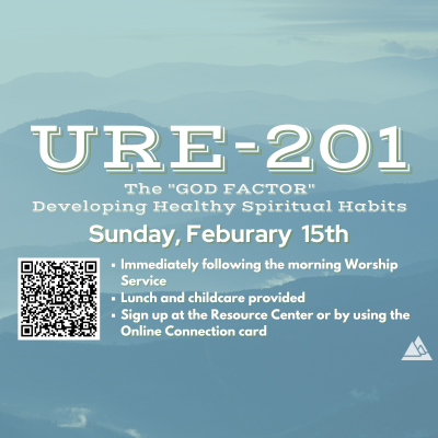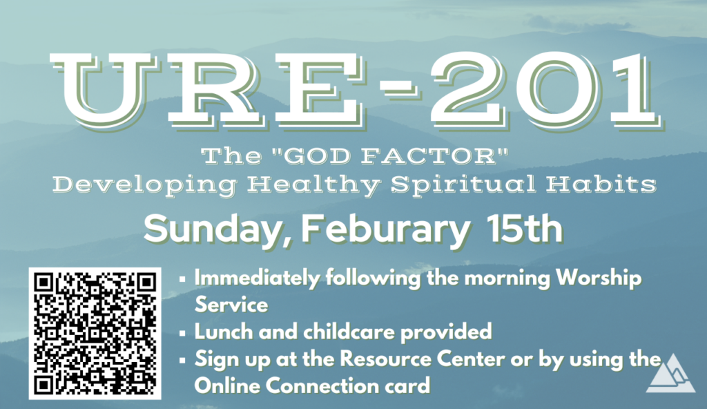 URE-201 “Developing Healthy Spiritual Habits” will be offered immediately following our regular Sunday service. Lunch and childcare are provided. Even if you haven’t completed URE-101, this class is open to you and will benefit your walk greatly. Please RSVP using the register link or the